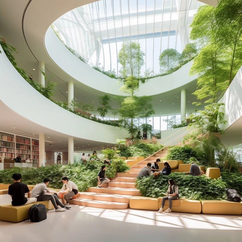某些設計引入環境聲學與芳香植物(如薄荷、薰衣草)系統,使嗅覺與聽覺共同參與「自然沉浸」體驗。研究顯示,這可增加愉悅指數與專注持續時間。